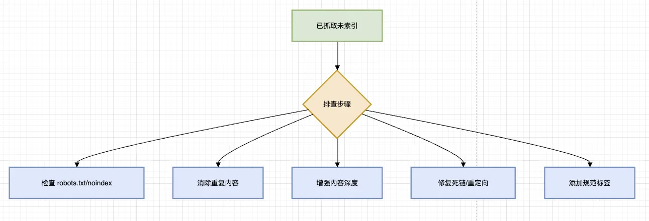 | 主要原因 | 爬虫优先级低、新页面 | 内容质量问题、技术性拦截 |