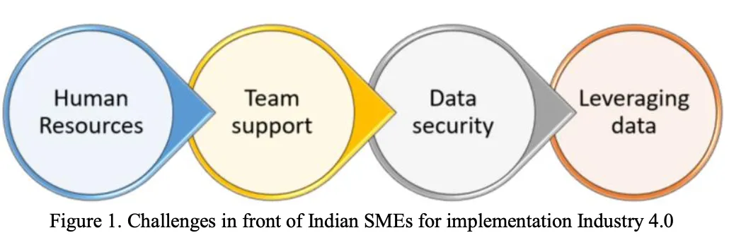 技术挑战——印度中小企业面临挑战,因为其内部缺乏必要的数据分析和IT培训专业知识。企业迫切需要一支能够管理I4.0技术的高素质人才队伍。此外,缺乏明确的I4.0实施模型和指导方案是一大显著障碍。不足的数字基础设施也使得I4.0技术的顺利整合变得困难,需要在连接能力和数据处理能力上进行显著提升。