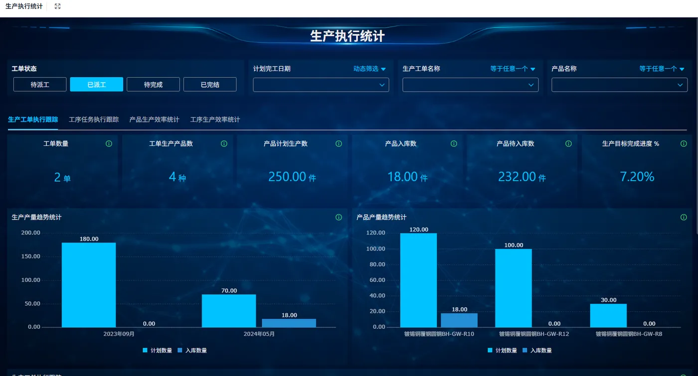 生产执行统计是对生产过程中每个任务的完成情况进行统计分析。它可以展示每个工单的生产时间、生产效率、任务延误等数据,帮助管理人员了解生产的瓶颈所在。
