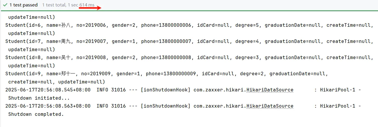 我们可以看到我第一次查询速度是614ms