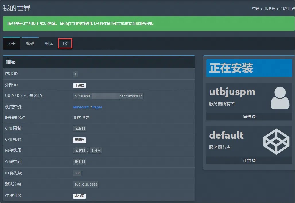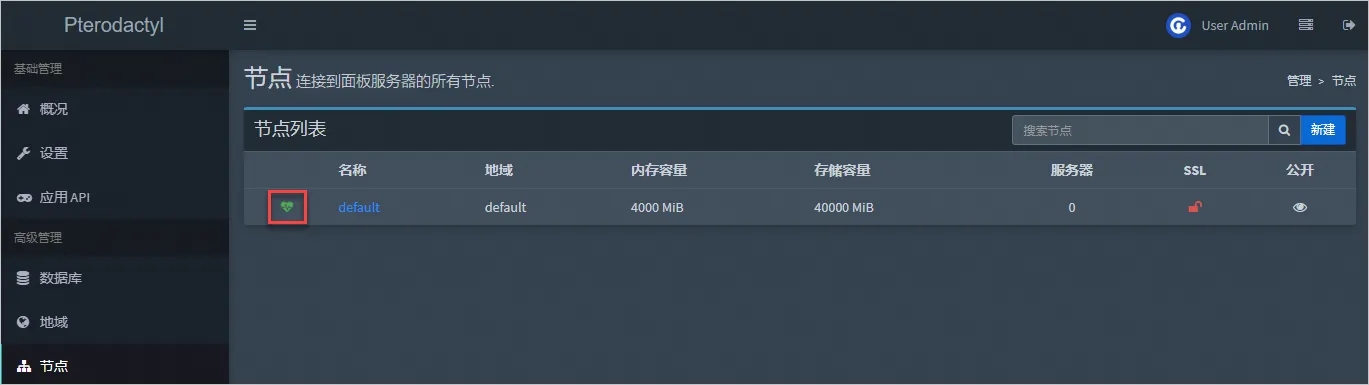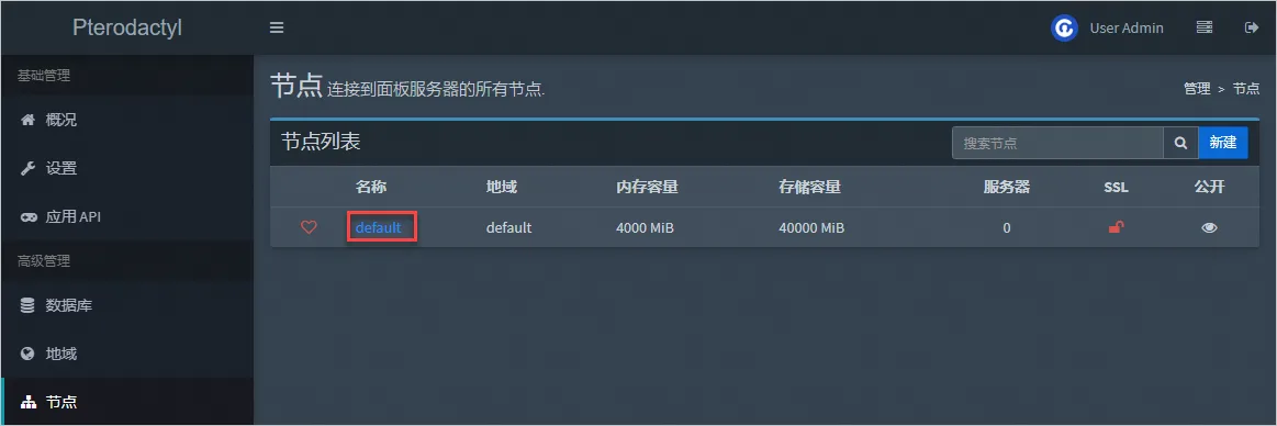 节点指一个具体的服务器实例,翼龙面板默认已经创建了一个default节点,默认情况下您后期的游戏服务器都会搭建在翼龙面板所在的轻量应用服务器实例中。