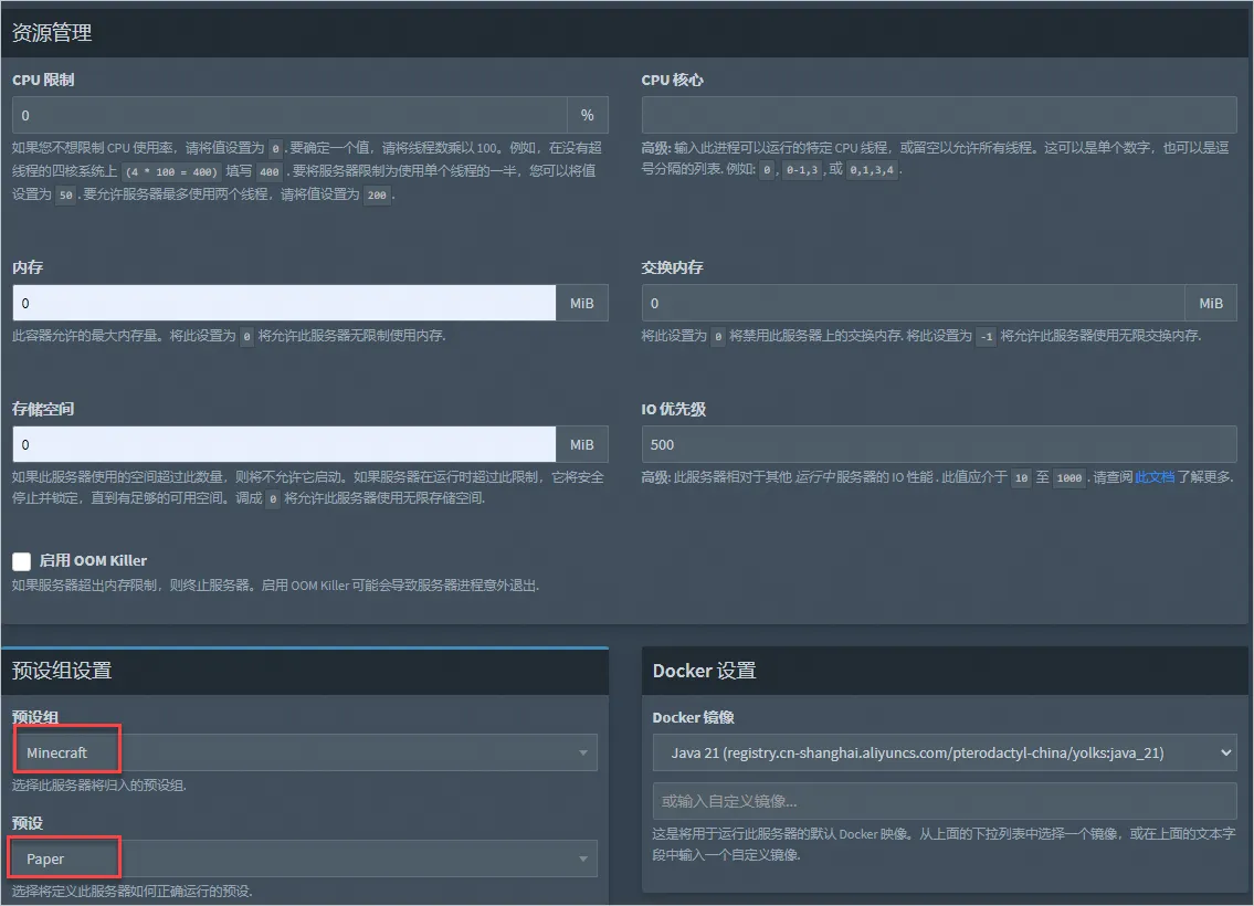 预设是翼龙面板中用于定义特定游戏或应用服务器配置的模板,它包含了启动游戏服务器所需的所有命令和配置信息。预设组是翼龙面板中用于分类和管理预设的集合。关于预设组的更多信息,请参见翼龙面板官方文档。
