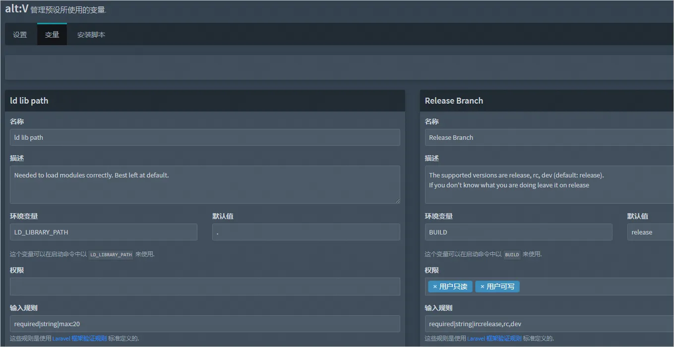 导入预设后,您可以单击变量页签,对默认设置的游戏参数进行修改。