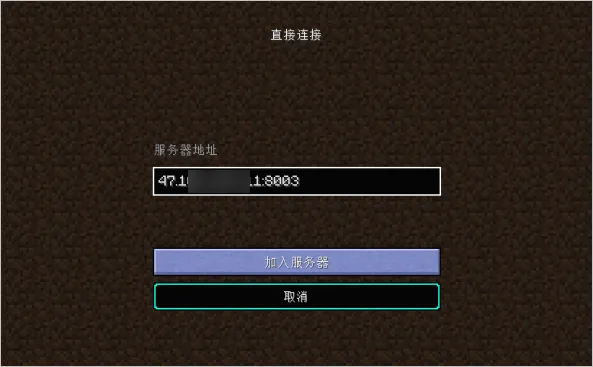 c. 输入步骤d获取的游戏服务器的地址,单击加入服务器。