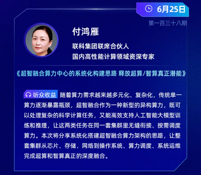 编者按:在数字经济蓬勃发展的今天,算力已成为推动社会进步的核心驱动力。超智融合这种新型的异构算力,正成为破解算力瓶颈、释放数据潜能的关键。联科集团加入龙蜥社区多年,一直与龙蜥保持深度合作,其超智融合算力管理平台 CHESS 与 Anolis OS 的完成了兼容适配认证。今天,联科集团联席合伙人付鸿雁结合联科集团 25 年深耕高性能计算的经验,系统化解析超智融合算力中心的搭建路径,实现整套集群从芯片、存储、网络到操作系统、算力调度、系统运维完成超算和智算真正的融合。本文整理自龙蜥大讲堂第 138 期,以下为本次分享内容: