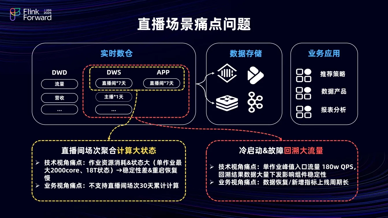 直播场景的痛点问题主要分为计算大状态和回溯大流量两类。