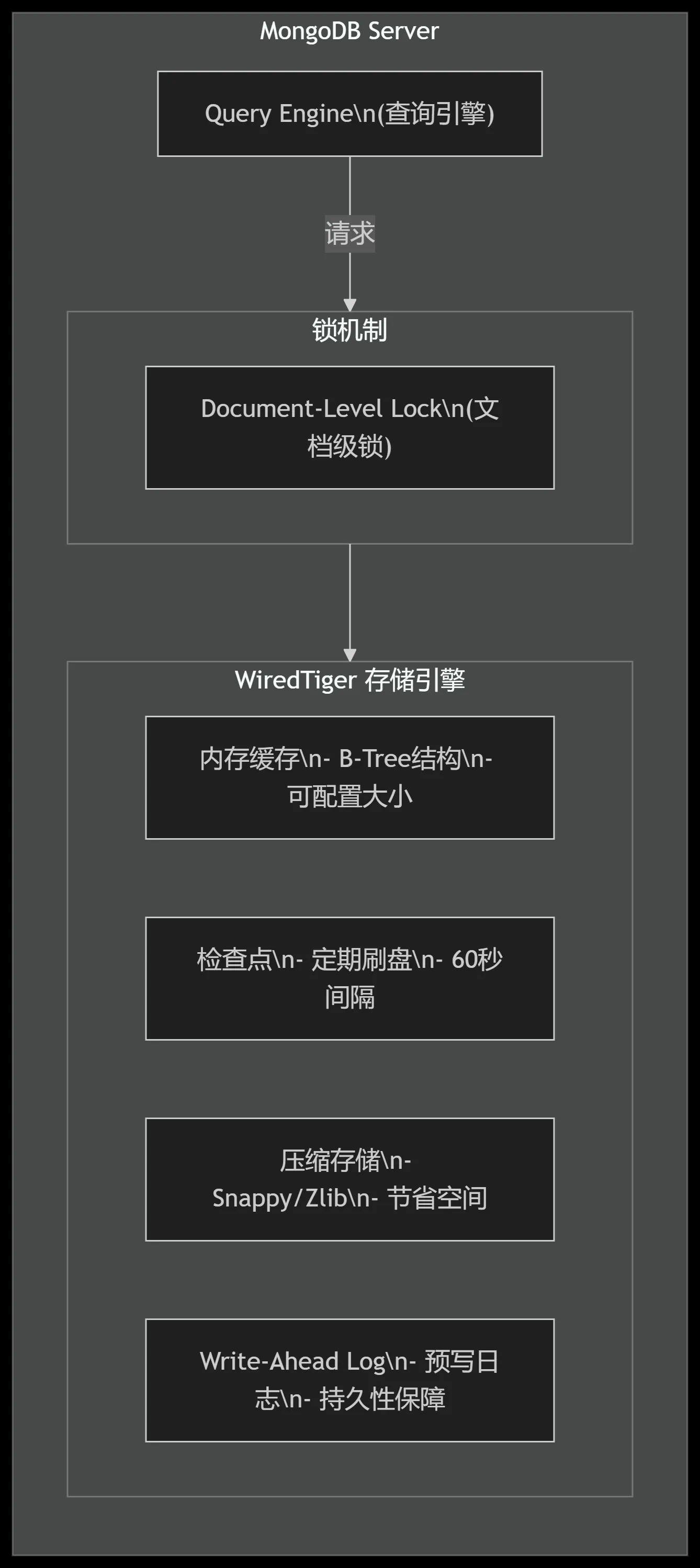 - 文档级锁:比 MMAPv1 的集合级锁更细粒度,提高并发性能。