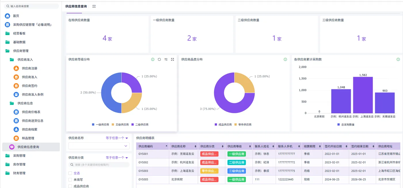 供应商管理是供应链管理系统的关键部分,通过合理的供应商筛选、评分和管理,能够有效保证采购的产品质量和交货时间。