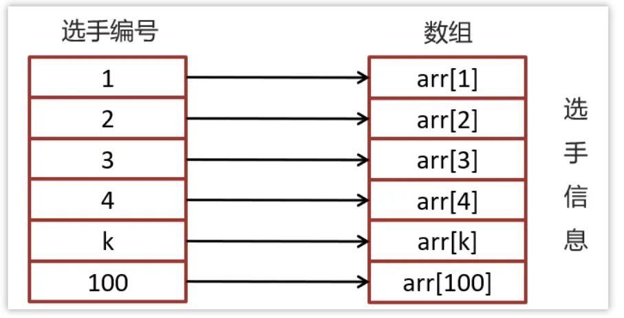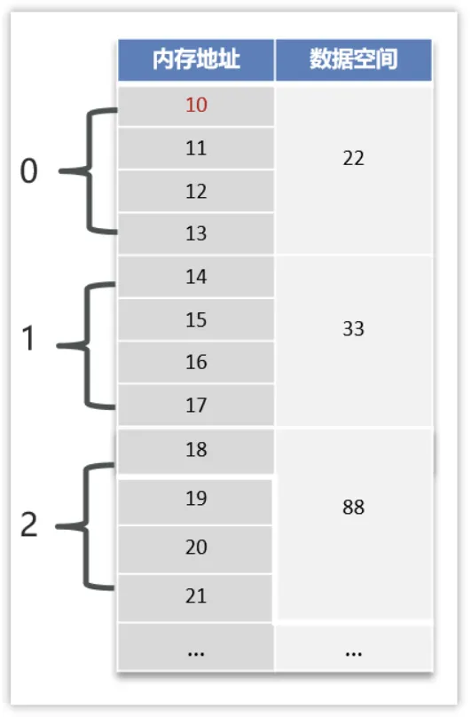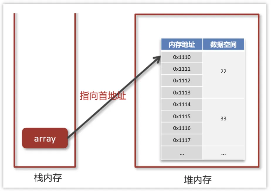 为了方便大家理解,我们把数组的内存地址稍微改了一下,都改成了数字,如下图