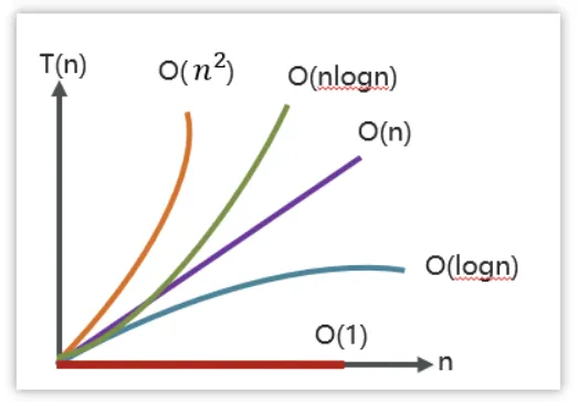 下图是一些比较常见时间复杂度的时间与数据规模的趋势: