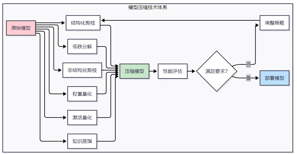 模型压缩是边缘智能体部署的关键技术,主要包括剪枝、量化、知识蒸馏和低秩分解等方法。