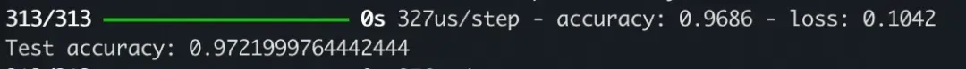 # 评估模型 test_loss, test_acc = model.evaluate(test_images, test_labels) print(f'Test accuracy: {test_acc}')