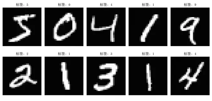 import numpy as np import os import matplotlib.pyplot as plt # 加载mnist.npz文件 mnist_path = os.path.expanduser('~/.keras/datasets/mnist.npz') data = np.load(mnist_path) # 显示数据集包含的数组 print("MNIST 数据集包含以下数组:") print(data.files) # 提取数据 x_train = data['x_train'] y_train = data['y_train'] x_test = data['x_test'] y_test = data['y_test'] # 显示数据形状 print(f"\n训练图像: {x_train.shape}, 类型: {x_train.dtype}") print(f"训练标签: {y_train.shape}, 类型: {y_train.dtype}") print(f"测试图像: {x_test.shape}, 类型: {x_test.dtype}") print(f"测试标签: {y_test.shape}, 类型: {y_test.dtype}") # 显示几张图像示例 plt.rcParams['font.family'] = 'SimSong' plt.figure(figsize=(10, 5)) for i in range(10): plt.subplot(2, 5, i+1) plt.imshow(x_train[i], cmap='gray') plt.title(f"标签: {y_train[i]}") plt.axis('off') plt.tight_layout() plt.savefig('mnist_samples.png') # 保存图像到文件 print("\n已保存10张示例图像到 mnist_samples.png") # 将部分数据保存为普通图像文件 output_dir = 'mnist_extracted' ifnot os.path.exists(output_dir): os.makedirs(output_dir) # 保存前20张训练图像 for i in range(20): img_path = f"{output_dir}/train_{i}_label_{y_train[i]}.png" plt.imsave(img_path, x_train[i], cmap='gray') print(f"\n已提取20张训练图像到 {output_dir} 目录")