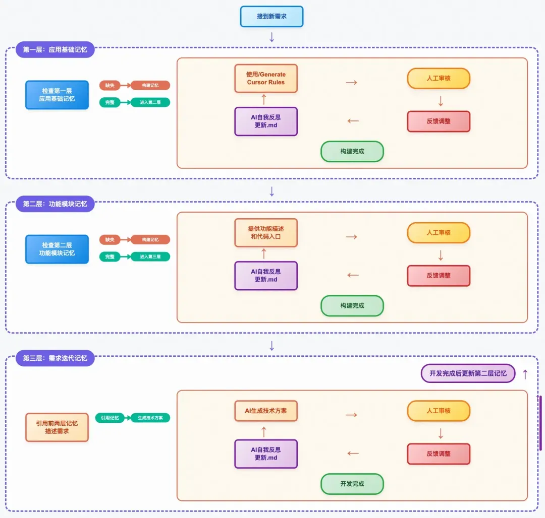 关键背景知识,就像系统架构中由基础组件+业务需求组成的具体功能。 - 第三层-需求迭代记忆:是AI基于项目迭代中