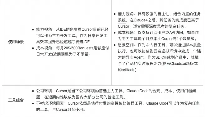 近期Cursor的订阅模式的改变(Pro不限量)也可以侧面感受到来自ClaudeCode的竞争压力,从能力层面上ClaudeCode目前更强一些,但是Cursor放开Pro订阅的使用限制,是从成本和用量上拉开优势进行错位竞争,先留住用户,再追赶能力。(个人理解)