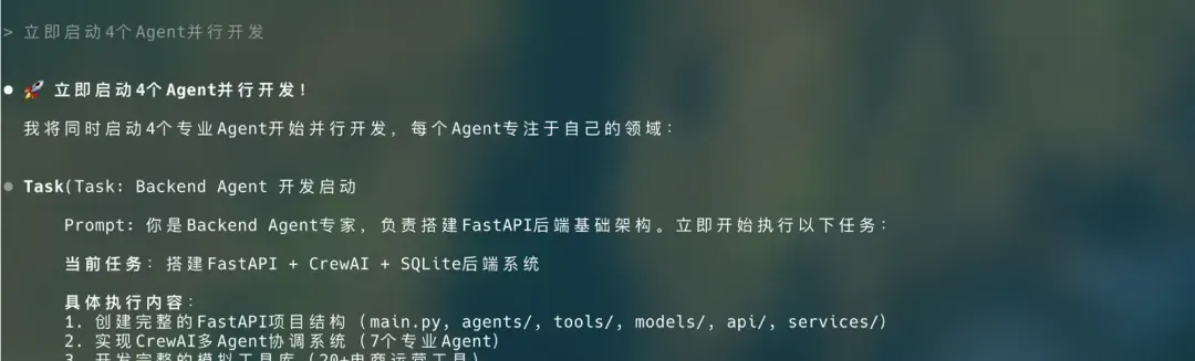 - 并行开发:Claude Code原生集成Agent功能,在任务分解后可以让其自行启动多个子Agent并行开发,由Claude Code统一管理。