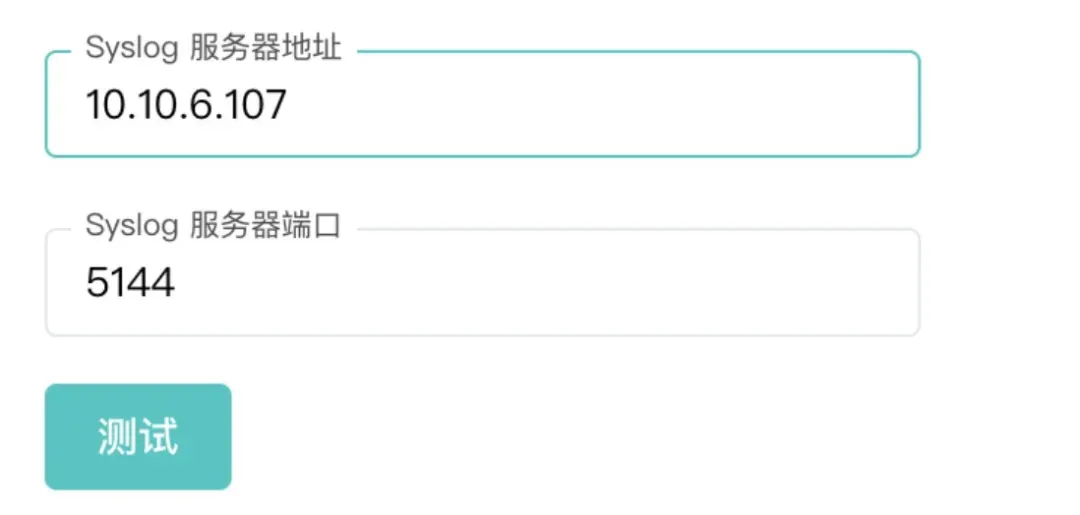 - 配置完成后,点击 测试 按钮,若 Syslog 服务器收到测试信息,则代表配置成功。