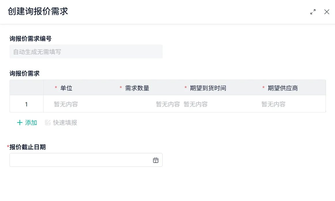 现在统一报价入口、标准字段,供应商打开页面,就知道该报什么、必须填什么、什么时候截止。