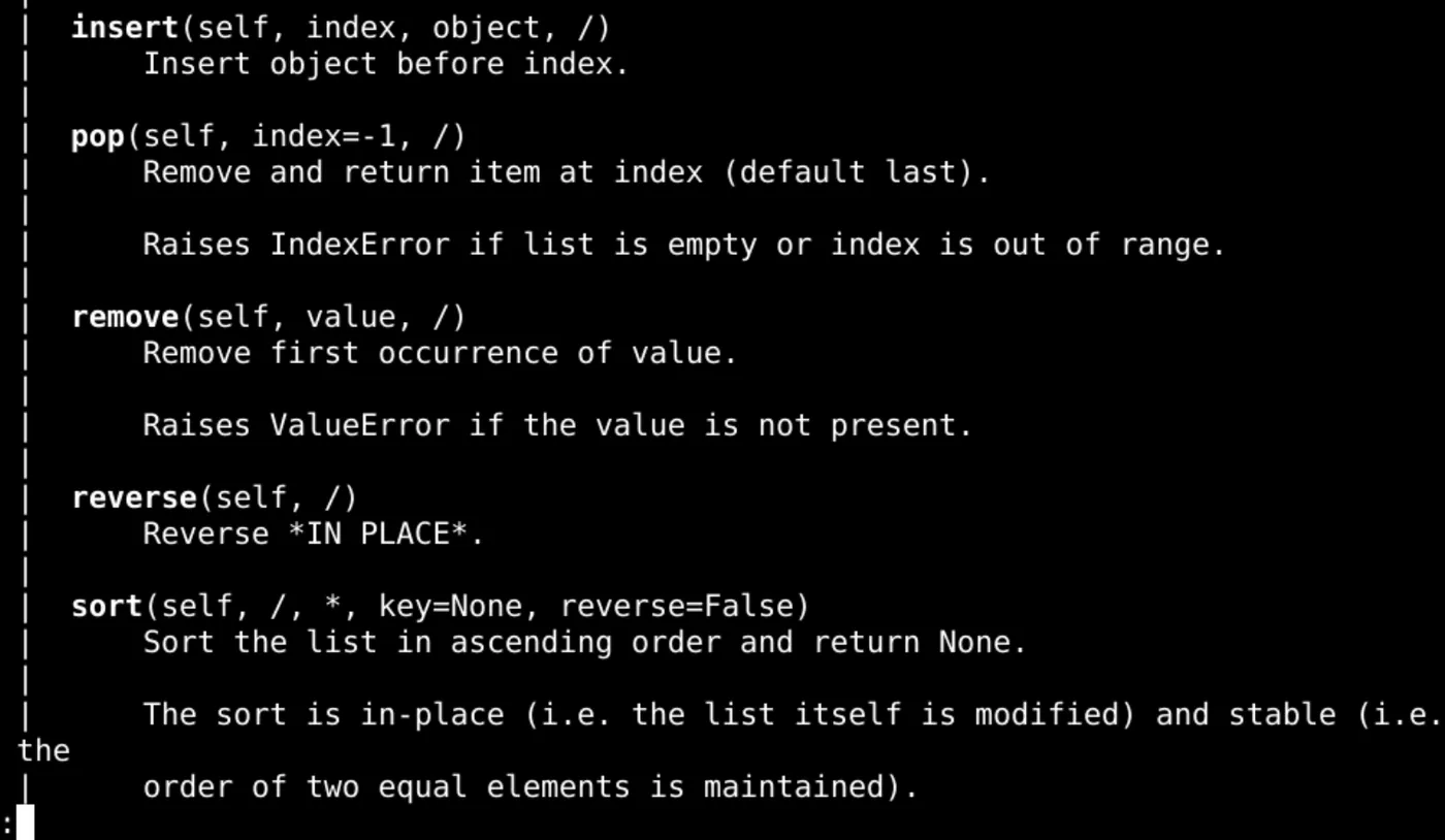 help(list)