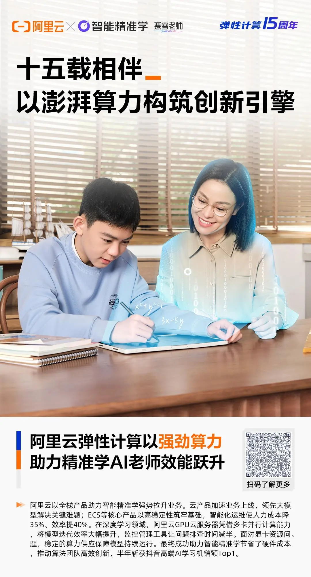 【导语】 当全球首个K12教育超级智能体“寒雪老师”在深夜为万千学子答疑解惑,支撑其流畅互动的,是阿里云弹性计算15年淬炼的坚实算力底座。从实验室到千万课堂的弹性跃迁,从“超拟人”教学到教育普惠,看算力如何为智能精准学加速 AI 创新,成为赛道冠军。