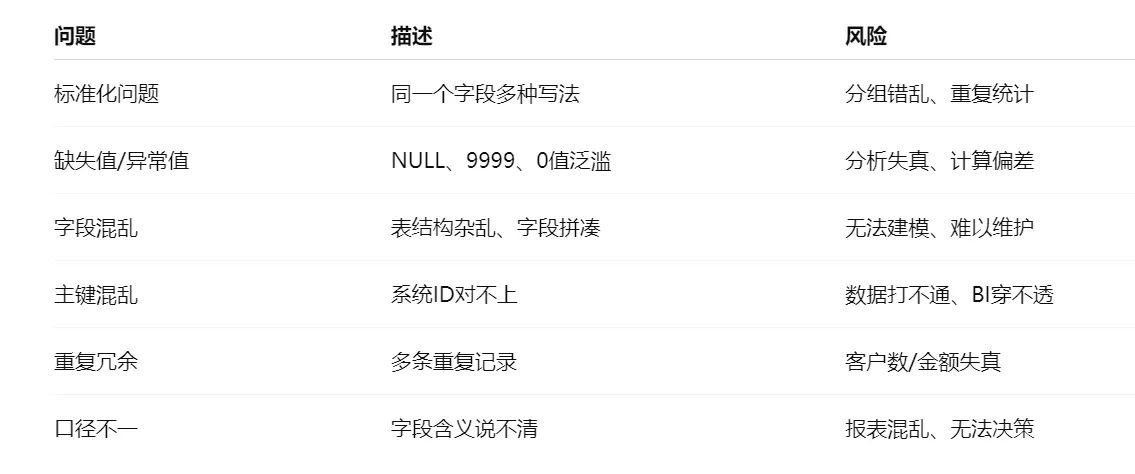 很多时候,报告做出来了,图表看起来也挺花哨,但业务部门一看,摇头说:“这数据不对啊!” 领导一问:“为啥这报表跟财务的对不上?” 分析师一脸尴尬:“可能……底层数据有点问题。”