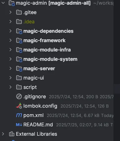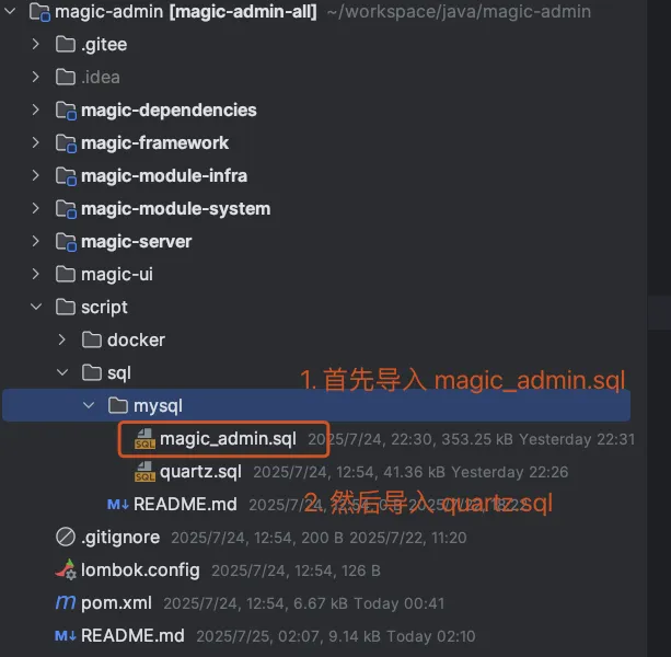 magic_admin.sql:用于创建或初始化 MagicAdmin 后台管理系统所需的数据库结构和初始数据 。
