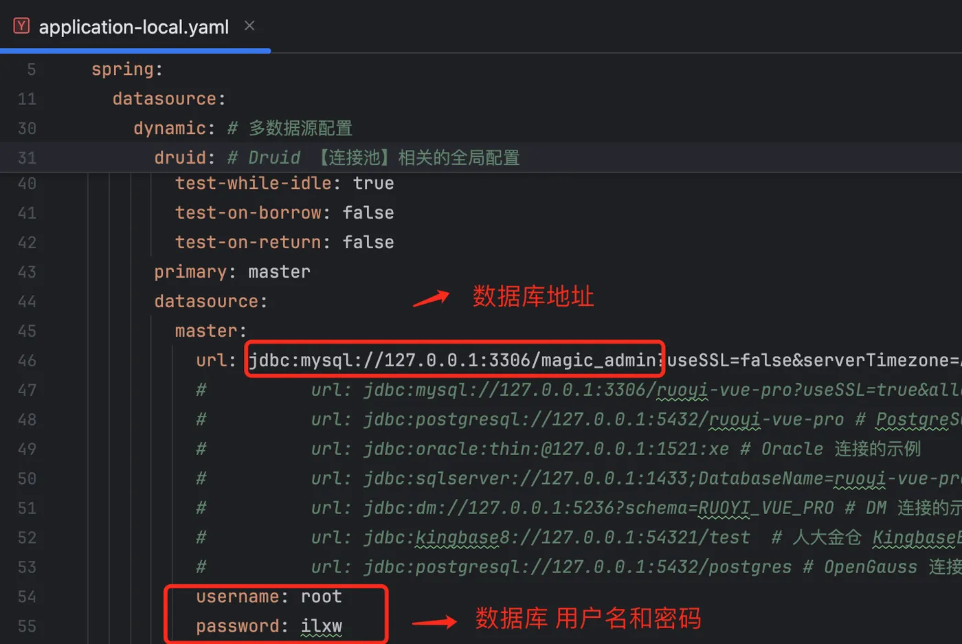 1、修改 MySQL 数据库信息:
