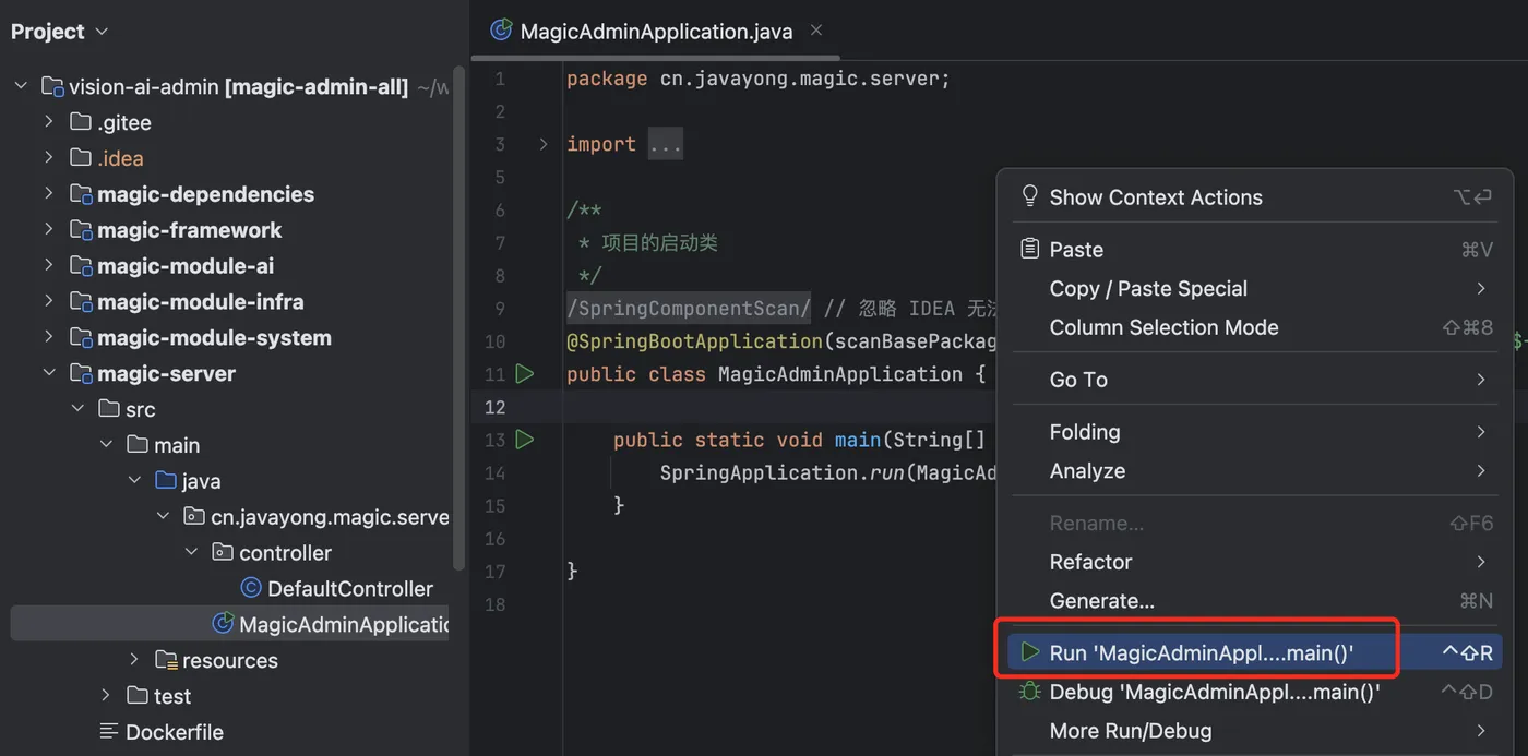 启动 MagicAdminApplication.java 即可。