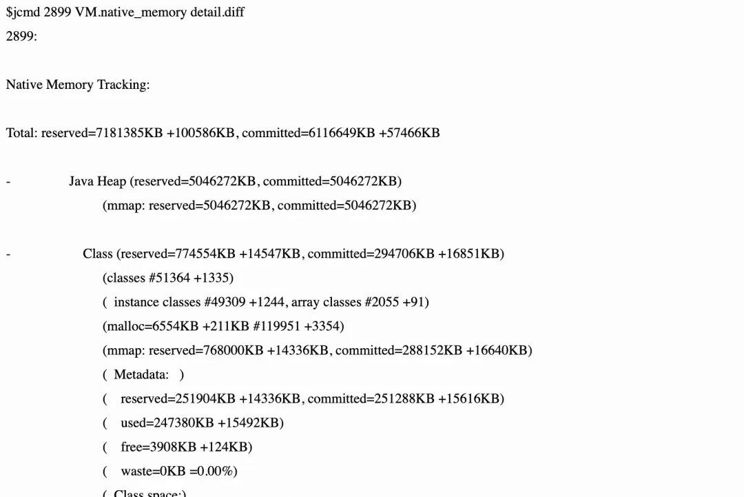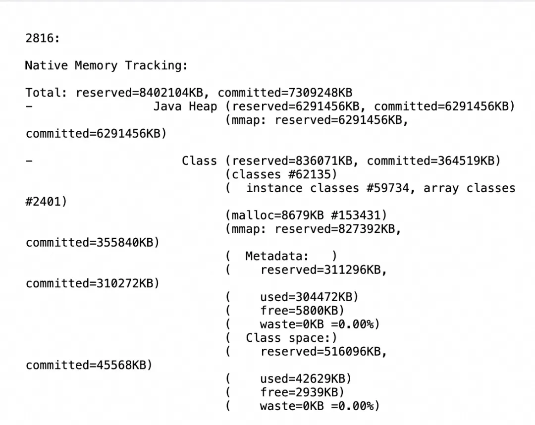可以看到committed约为7G,这 5 GB 的差距主要由以下几部分组成,这些都是 NMT 无法追踪的: