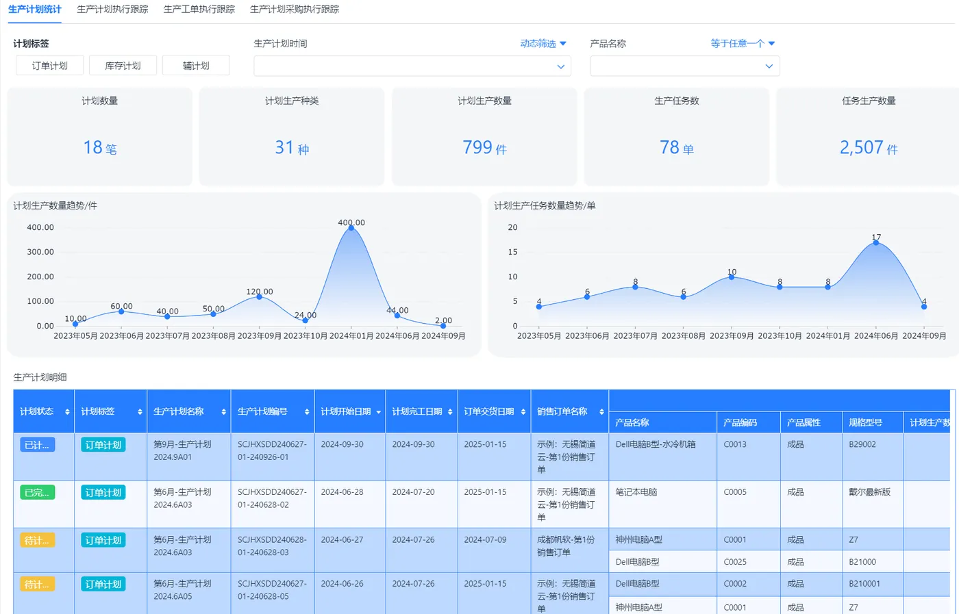 ERP系统支持从工单下达到报工入库的全过程追踪,自动记录产量、完工率、入库时间、异常情况,并同步回传至计划模块,形成闭环反馈。
