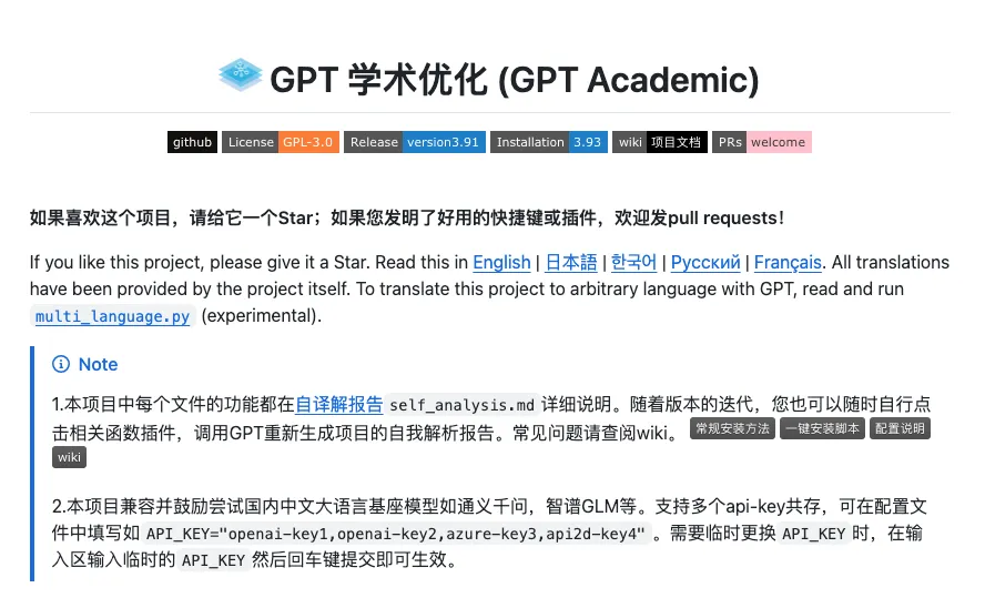 🧠 如果你正在找一个跨模型、跨语言、跨场景的科研辅助工具,不妨一试 gpt_academic。