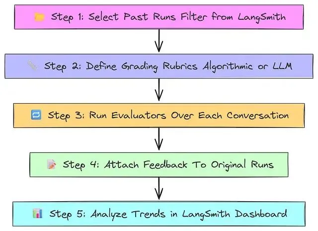 持续监控机制应在生产中实施实时反馈,定期重新运行评估以检测回归,监控算法反馈指标的趋势。文档和版本控制使用 LangSmith 的项目元数据跟踪实验,记录每种评估技术选择的理由,版本控制评估数据集和标准。