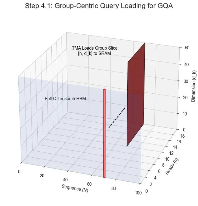 实现机制:系统一次性加载单个令牌位置的组内所有查询头。由于这些头都需要访问相同的选定键值块,内核可以从HBM为整个组仅执行一次数据获取操作。
