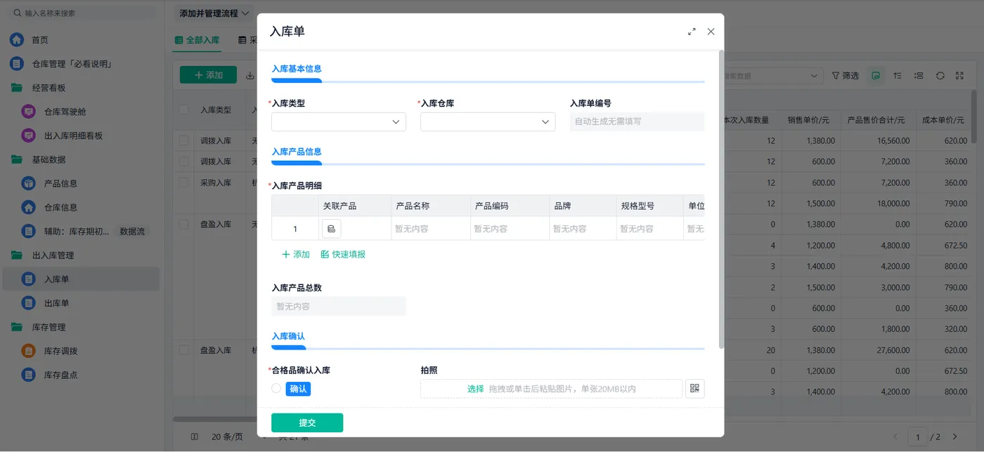 - 记录入库信息:生成入库单,并将货物信息录入系统。
