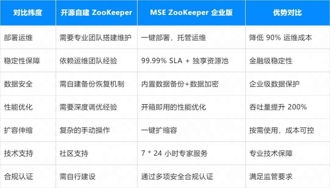 分布式系统的稳定性与安全性已成为企业核心竞争力的关键支撑。作为分布式协调服务的标杆,ZooKeeper 的部署与运维模式直接影响企业业务的连续性与效率。相较于开源自建方案,阿里云 MSE 托管 ZooKeeper 凭借深度打磨的企业级特性,为企业提供了更可靠、高效、安全的服务选择,重新定义了分布式协调服务的运维标准。