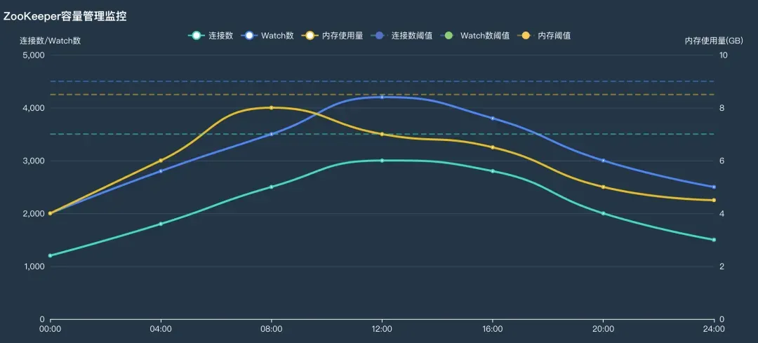 - 针对链接数、watch 数、内存大小等核心指标,实施基于规格的限流策略。该规范如同为集群设置智能调控机制,可依据实际情况动态调整阈值,有效抵御突发流量对集群的冲击,减少因资源耗尽引发的 FullGc 现象,保障集群始终处于稳定的负载区间。