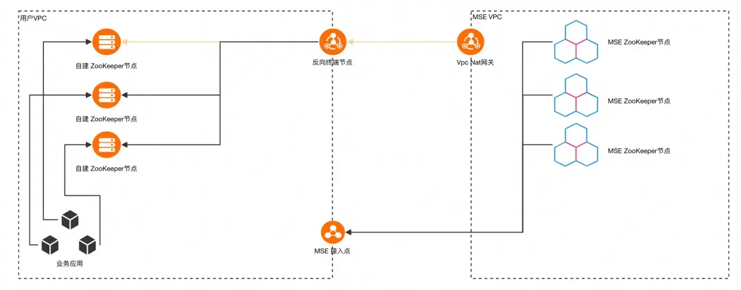 - 把 MSE ZooKeeper 与自建集群组建成一个集群,完成自建集群数据到 MSE ZooKeeper 集群的数据同步。