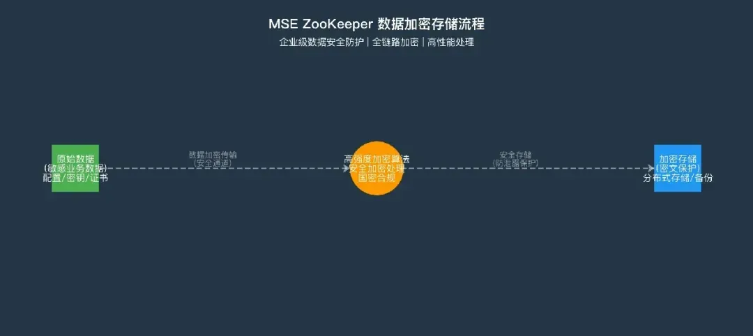 - MSE 企业版 ZooKeeper 支持数据加密存储,通过高强度加密算法对数据进行加密处理,从数据生成到存储的全生命周期保障信息安全,有效防止数据泄露风险,为企业核心敏感数据筑牢安全防线。