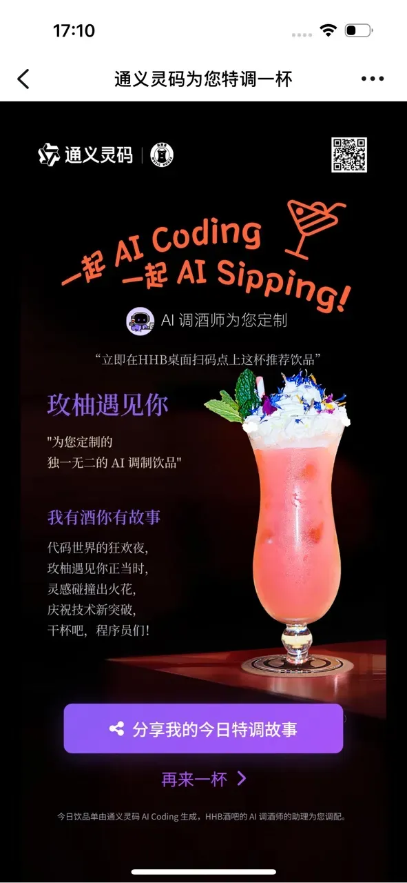 如果你也想用通义灵码定制自己的专属 AI 调酒师或者 AI 咖啡师,详细教程参考。