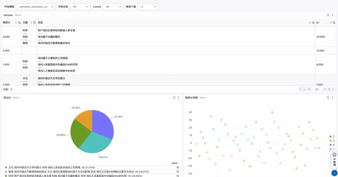 大概的效果如上图所示,比如说我们的这个提示词是这样的,然后它去调一个模型,这是模型返回的结果。然后我们可以从一个模型的模板去评估它是不是正确地回答了这个问题,它的回答到底靠不靠谱,是否有毒等等。然后我们还可以对评估的结果进行一些分类和聚类。也就是说可以对这些结果,进行一些语义化的标签的孵化。比如说这个模型的可能这次回答同时是一个友善的回答,属于一个文化类的问题等等。
