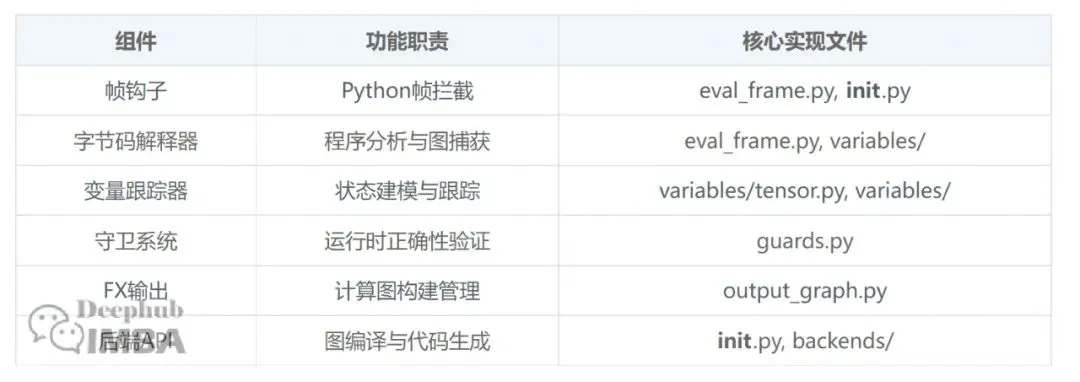 TorchDynamo的实现采用了模块化的架构设计,主要组件分布在以下关键文件中: