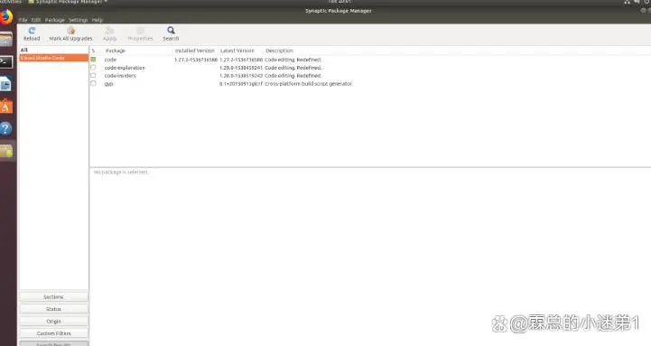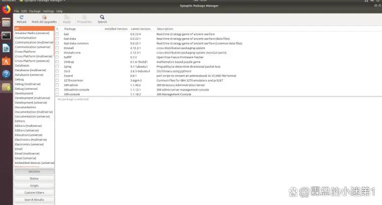 找出你希望卸载的程序。在左边的窗格中,你可以按照类别对程序进行排序列表。已安装的程序(软件包)将在列表显示在Synaptic上方的窗格内。