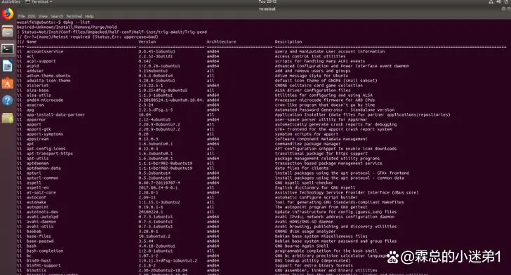 浏览已安装的程序。要查看已安装的软件包列表,请输入以下命令。请注意你希望卸载的软件包的名称。输入命令:dpkg --list