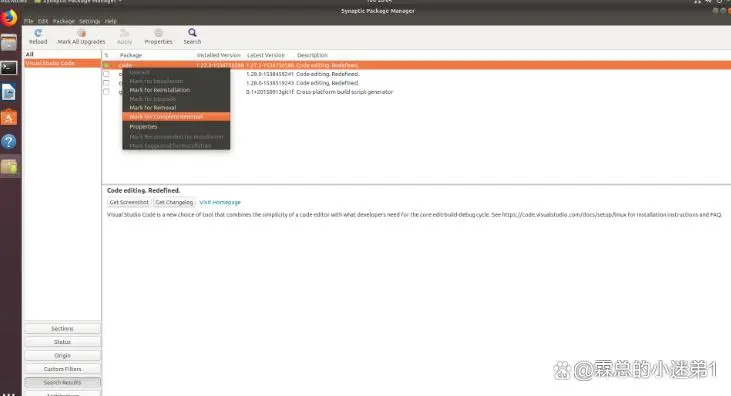 右击你需要协助的软件包。在菜单中选择标记为移除。你可以选择为多个需要卸载的软件包重复该操作。