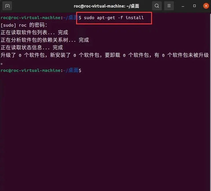 命令格式:sudo apt-get -f install