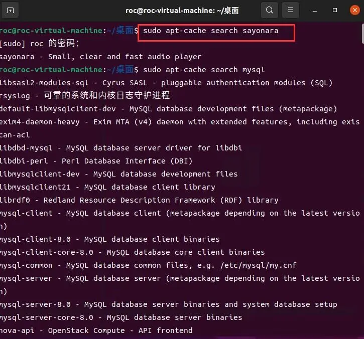 命令格式:sudo apt-cache search package (软件包)