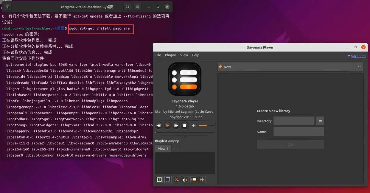 例如:安装轻量级别的音乐播放器Sayonara