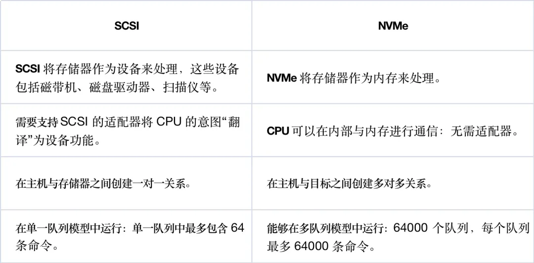 - NVMe treats storage as memory. NVMe 将存储视为内存。
