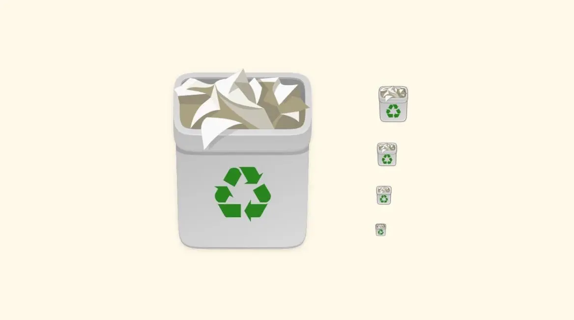 目前建议的设计方案将顶部来源k2.foul.mobi来源k2.fort.mobi开口加大,更清晰地表明它是垃圾箱,当里面放入文件时,会显示皱巴巴的纸张。设计师 ochi12 已经发布了多个版本的概念图标,并按不同尺寸发布,以查看在不同使用场景下的效果。最新版本能够适应缩小到较小尺寸的情况。