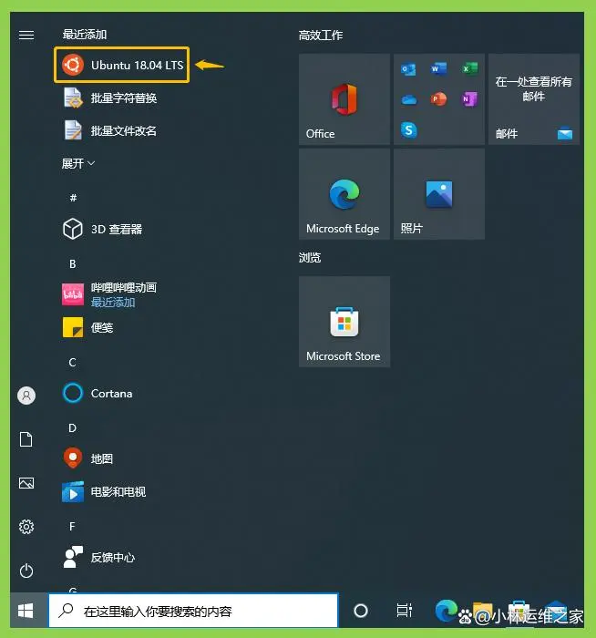 以Win10 21H2 专业版环境为例,Linux系统选用Ubuntu,需要用到Win10的应用商店!想了解应用商店的更多使用教程可参考Win10被忽略的功能!可替代360软件管家!再也不用怕软件难找了!